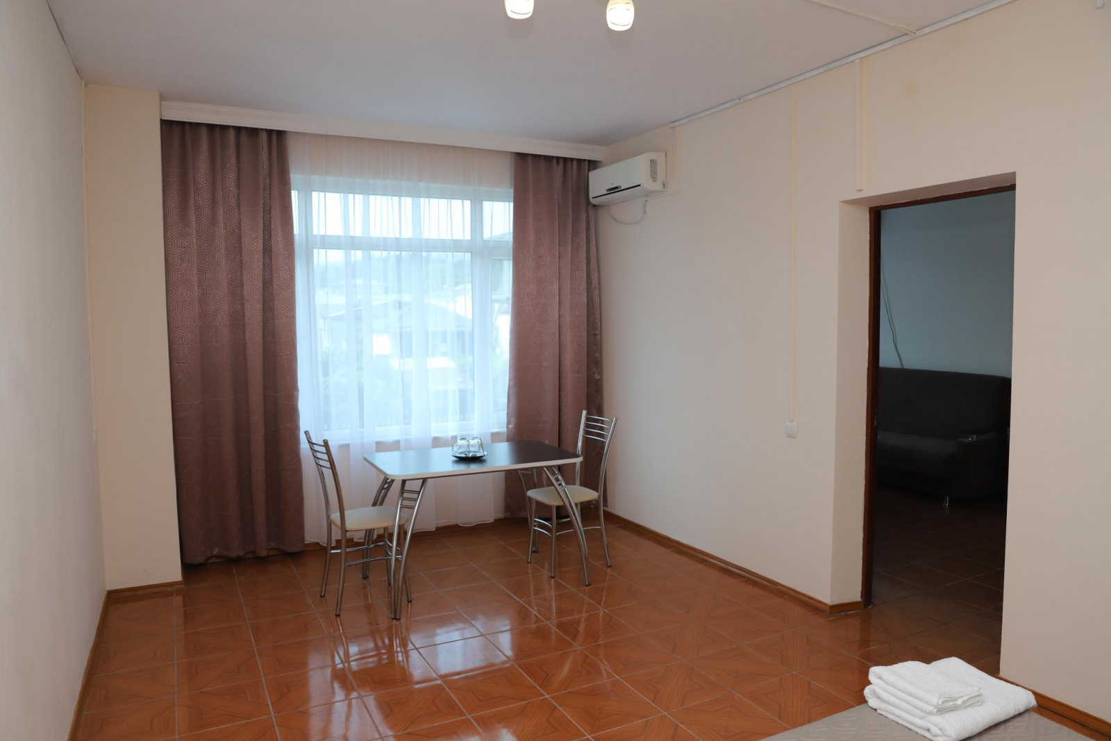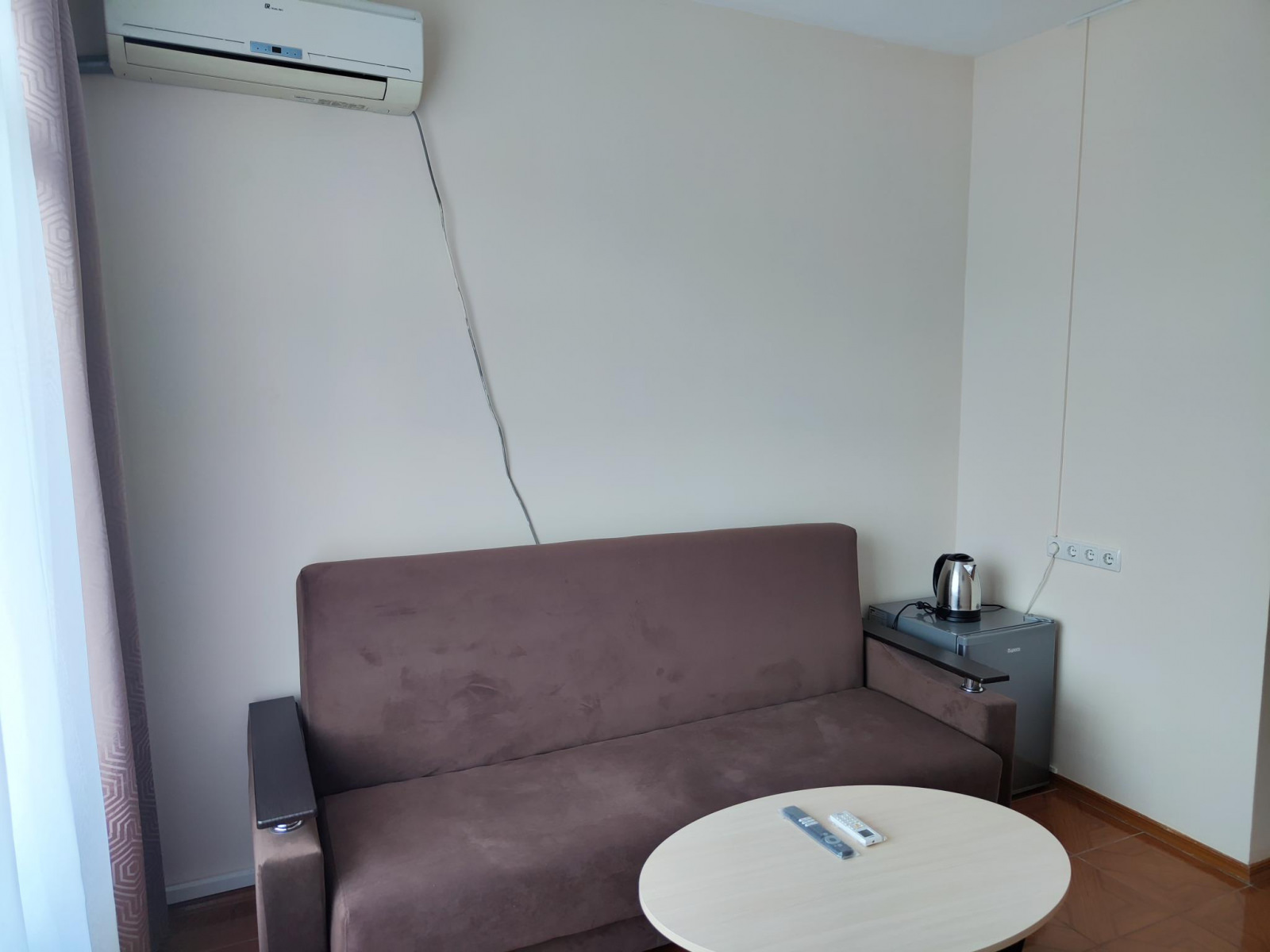 Номер "Люкс" состоит из 2 комнат. В спальне расположена удобная двухместная кровать, оформленная в стиле современной классики. Гостиная с раскладным диваном создает атмосферу приятного расслабления, во время которого можно наслаждаться великолепным видом из окна. Санузел в номере "Люкс" отвечает всем требованиям современной гигиены. Он оснащен современной сантехникой, белоснежными полотенцами и косметическими принадлежностями.Балкон добавляет ещё больше комфорта в номере "Люкс", и на нём можно наслаждаться прекрасным видом на город, а также отдохнуть, наслаждаясь свежим воздухом.Wi-Fi, смарт-ТВ и кондиционер обеспечивают идеальные условия для отдыха и работы на высоком уровне. Фен и чайник и холодильник находятся в распоряжении гостей для максимального удобства.Номер "Люкс" – прекрасный вариант для гостей, которые ценят комфорт и предпочитают роскошь во время своего отпуска.